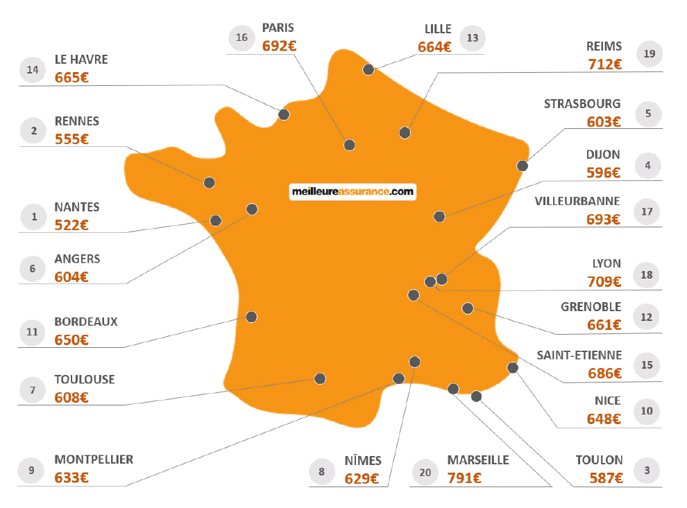 Après l'achat d'un véhicule avec ou sans crédit auto ou prêt conso, les conducteurs ne sont pas tous égaux face au prix de l’assurance auto. Meilleureassurance.com dévoile les tarifs moyens constatés dans les 20 plus grandes villes françaises, (classement de la ville la moins chère à la plus chère).