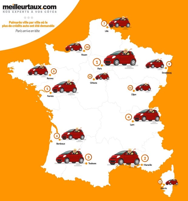 Nous avons également dressé un palmarès des grandes villes en fonction de la demande de crédit auto. A l’instar du classement des régions, c’est à Paris que la demande est la plus importante et à Ajaccio qu’elle est la plus faible en volumes.