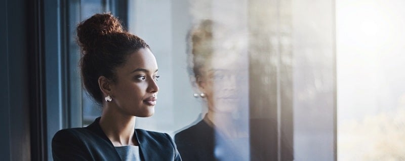 Une jeune professionnelle en réflexion pour contracter un pret bancaire