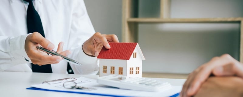 courtier avec maison et calculatrice