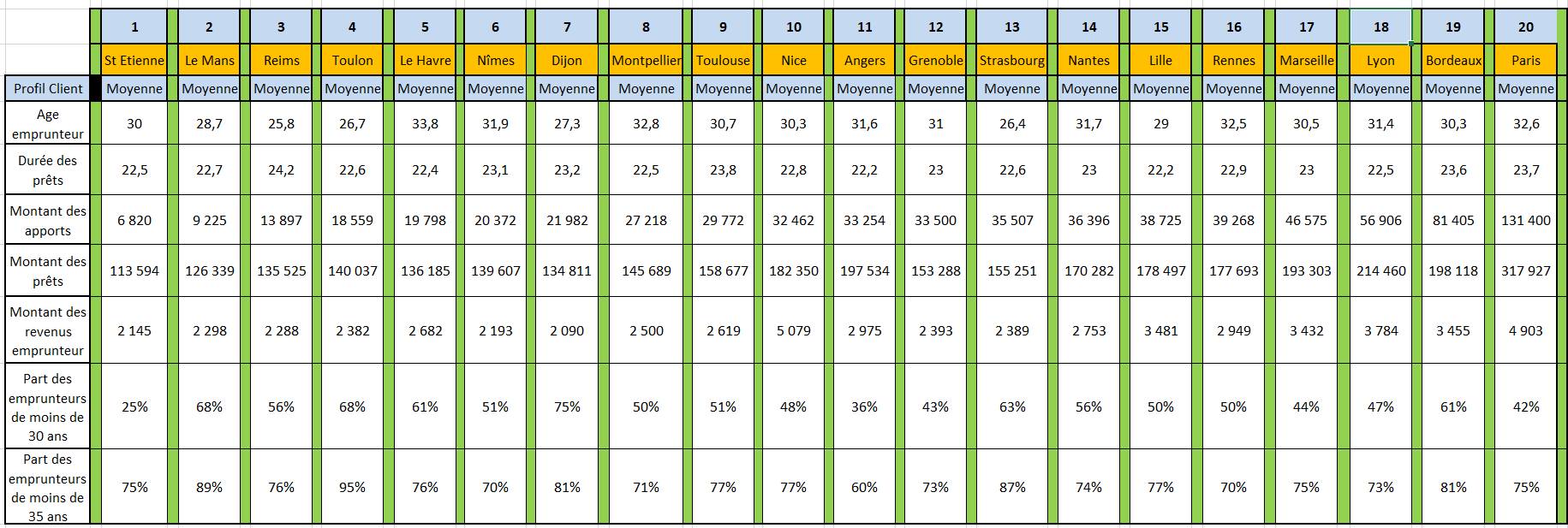 Le milieu classement regroupe les villes où un acheteur solo doit justifier d’un apport minimum compris entre 20 000 € et 35 000 €.