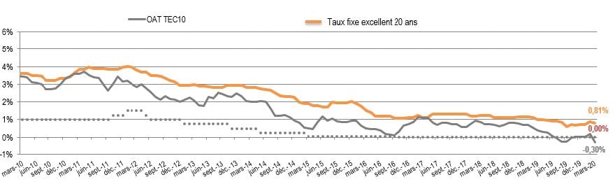 Taux fixe moyen  5,30% 3,95% 4,30% 3,35% 2,65% 2,20% 1,60% 1,65% 1,60% 1,55% 1,25% 1,29%