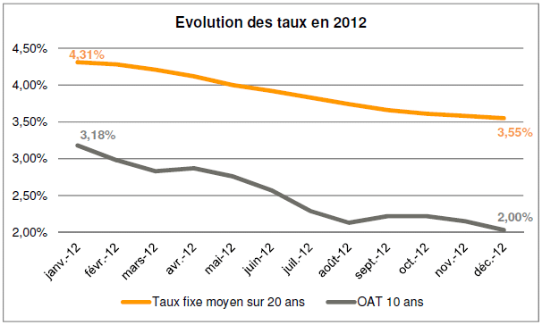 « En 2012, les taux ont diminué en moyenne de 0,50 point à 0,85 point selon les durées. C'est une baisse