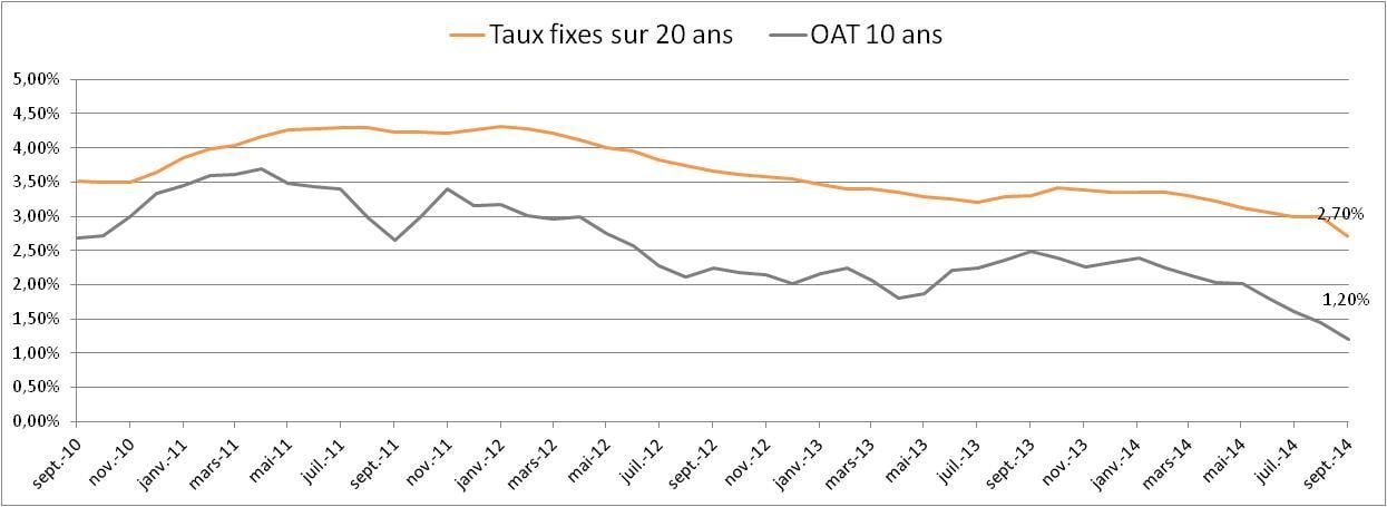 Ainsi, si nous comparons les taux par rapport au mois de septembre 2013, un taux moyen sur 20 ans se négociait autour de 3,30 %, période où nous pensions d'ailleurs déjà avoir atteint le plancher des taux bas !