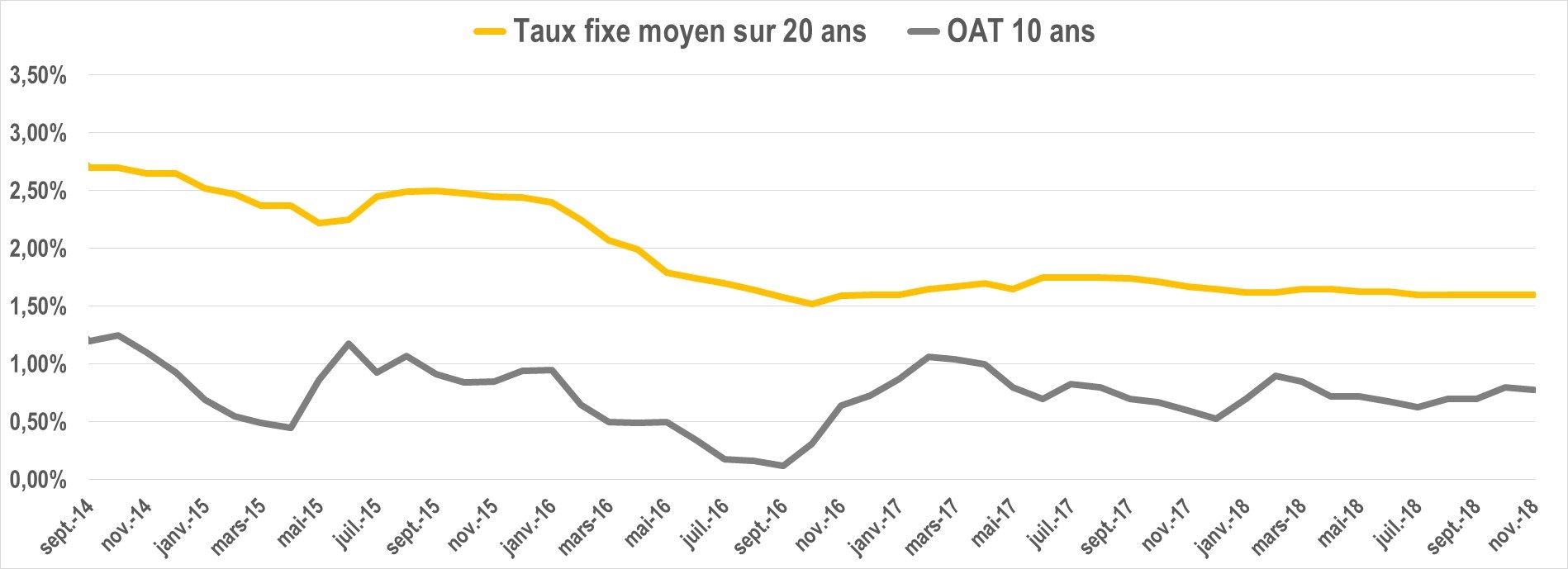Pas de changement sur les OAT (qui servent de référence aux taux des crédits immobiliers aux particuliers) justifiant une hausse des taux. Dans ce contexte, pas de resserrement des marges bancaires par rapport à la situation des mois derniers.