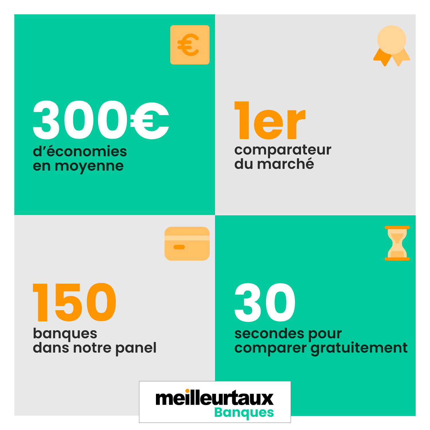 Meilleurtaux Banques est aujourd’hui une solution incontournable pour trouver votre nouvelle banque. Ne perdez plus de temps à aller de banque en banque pour étudier l’offre de chacune. Nous vous proposons un outil en ligne dont les avantages pourraient bien vous convaincre. Dans les grandes lignes, vous pourrez économiser jusqu’à 300 € sur vos frais bancaires, comparer plus 150 banques et offres de services avec 20 lignes de tarifs par banque et 500 packages comparés et surtout comparer en moins de 30 secondes via un formulaire pour choisir la banque qui correspond à vos besoins.